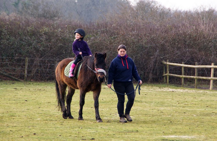 Tracey's children can't wait to ride Nettles and are already learning to lead him in. Pink wellied, I, who is four, is learning to hold the reins and how to ask Nettles to walk on. Just a kiss-kiss noise and she is on the move.